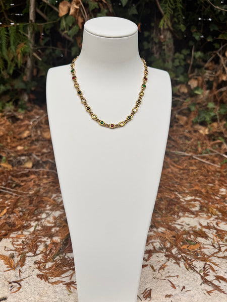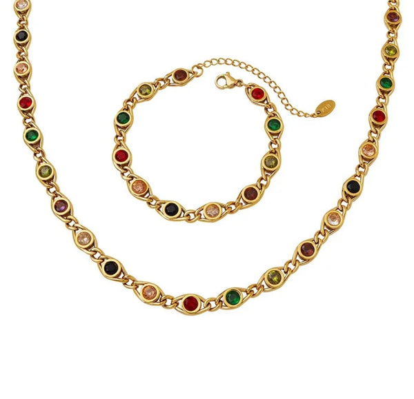 Collier en acier inoxydable avec zircons plusieurs couleurs.