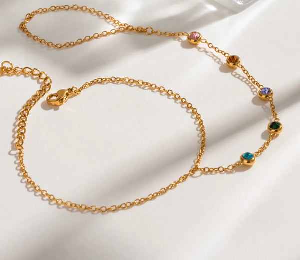 Chaîne de mains avec zircons couleurs en acier inoxydable.